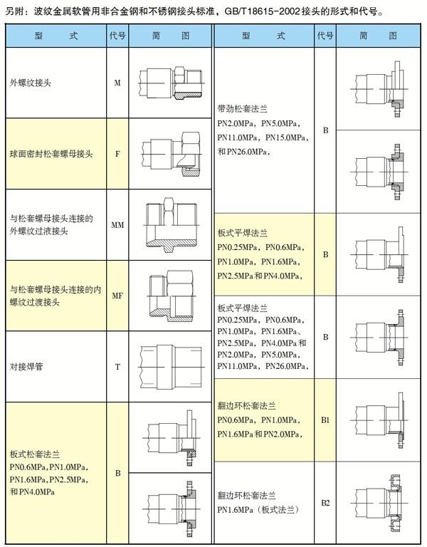 波纹金属软管标准接头型式和代号